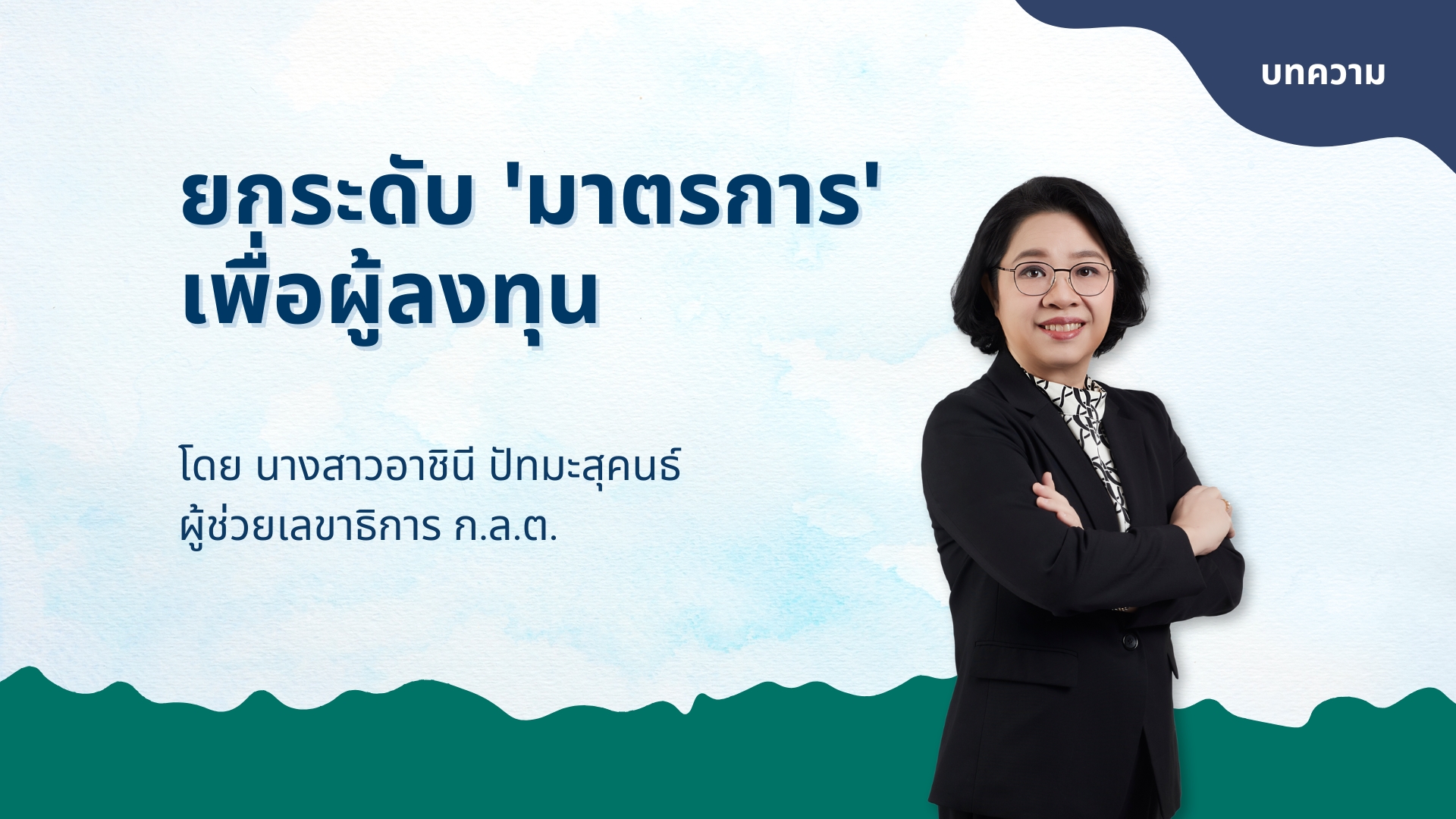 จากบทความ "ยกระดับ ‘มาตรการ’ เพื่อผู้ลงทุน" โดยนางสาวอาชินี ปัทมะสุคนธ์ ผู้ช่วยเลขาธิการ สำนักงานคณะกรรมการกำกับหลักทรัพย์และตลาดหลักทรัพย์ (ก.ล.ต.) ในคอลัมน์ “เล่าให้รู้กับ ก.ล.ต.” นสพ.ประชาชาติธุรกิจ